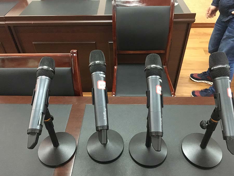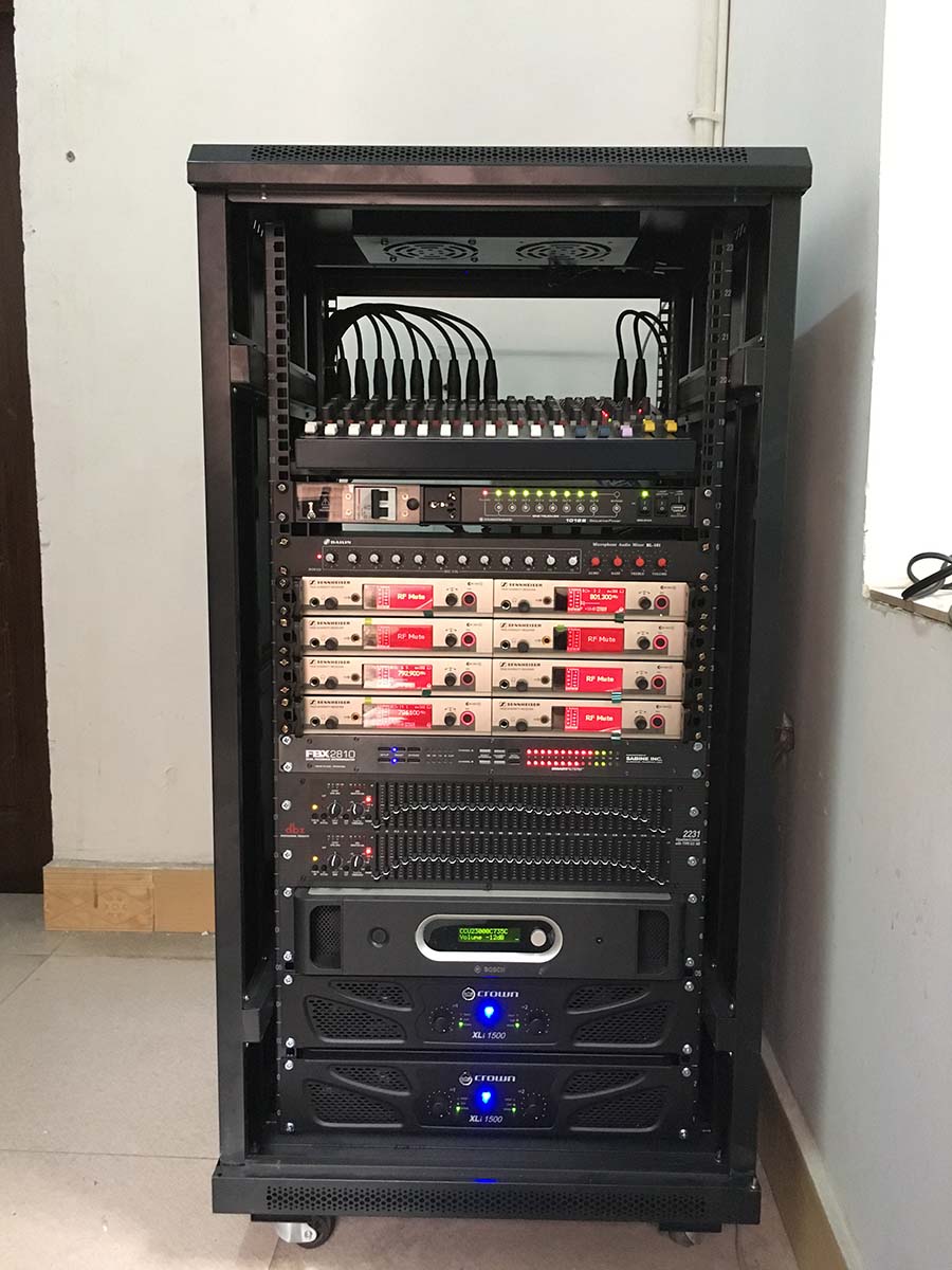 315會議室是萬盛經(jīng)管委會非常重要的會議室,此會議室每天都有重要會議,所以此會議室音響擴(kuò)聲系統(tǒng)選用美國BOSE(博士)音箱4只,會議系統(tǒng)選用德國BOSCH(博世)手拉手會議系統(tǒng)24只,無線話筒選用德國森海塞爾話筒8只,功放選用美國皇冠功放2臺,調(diào)音臺選用英國聲藝,其他周邊再配上賽賓反饋抑制器、DBX均衡器。該會議室所有音頻擴(kuò)聲設(shè)備均選用的全球頂級品牌,音質(zhì)良好,話筒拾音距離40-80cm。該會議室設(shè)備搭配合理,聲場布局均衡,使整個(gè)會議室音響效果清晰,聲音還原度極好。無雜音,無嘯叫聲,系統(tǒng)運(yùn)行穩(wěn)定。以下為施工完成后的照片: