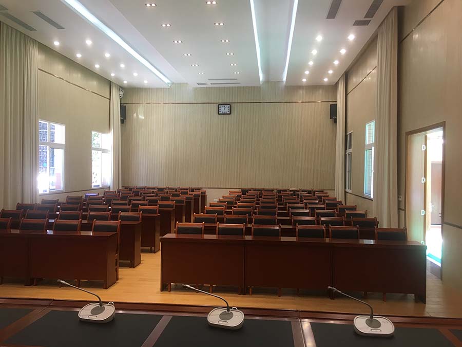 萬盛管委會會議室音響系統選用德國博世(BOSCH)手拉手話筒,美國博士(bose)音響、功放、處理器,雅馬哈調音臺,鐵三角無線話筒,長虹激光投影儀。整套系統運行穩定,會議擴聲性能良好,音響聲音清晰,話筒使用無嘯叫,音箱無雜音,,相關使用方對我公司高度贊譽,對整套設備非常滿意。