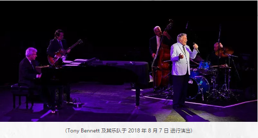 傳奇藝術家 Tony Bennett 盡管已 92 歲高齡,Bennett 仍顯得精神矍鑠,其舞臺表現始終熠熠生輝。Tom Ranier 為其進行鋼琴伴奏,Harold Jones 擔任鼓手,Marshall Wood 為貝斯手,Gray Sargent 則擔當了吉他手。他的演出曲目包括一系列經典作品,如 “I Left My Heart in San Francisco”,演出精彩紛呈,引得觀眾起立致意。