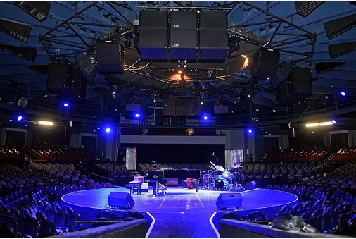 作為一個配備可旋轉舞臺的劇院,Celebrity Theatre 可謂是音樂會聽眾的福音,他們可以從多種角度觀看藝術家的表演。這一獨特構造對技術提出了一定挑戰,因此,負責系統研發的音響設計師針對場地特點采用了一些特別措施,從而確保該系統可在這一造型獨特的場地內部順利安裝并打造頂級音效。