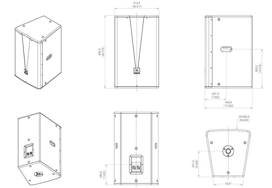 15”定制低音單元,提供高效的電聲轉換率JBL 2408-2壓縮高音單元,降低系統失真率箱體采用15 mm夾板,表面覆以DuraFlexTft